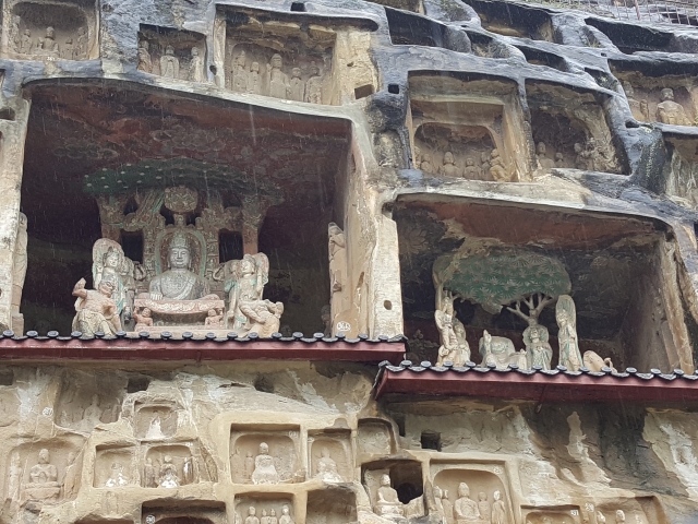 千佛崖是第一批全国重点文物保护单位,位于四川广元,坐落在一个叫做“金牛古道”的古代交通要道上面,历史上很长一段时间里是从关中入川的必经之路。我去的时候正值四川的雨季,淅淅沥沥的雨终日下个不停。汹涌的嘉陵江水滔滔不绝。江的一边,飞驰的高铁列车呼啸而过。江的另一边,数千座造像静静地伫立在险峻的崖壁上年复一年,惯看秋月春风。那一刻仿佛感受到了数千年的时光交织在了一起。这种感觉妙不可言。当年杜甫在安史之乱中为了躲避战乱,举家从西安往成都迁徙,走的就是这条金牛古道,想必他路过千佛崖的时候也一定跟我一样思绪万千吧。