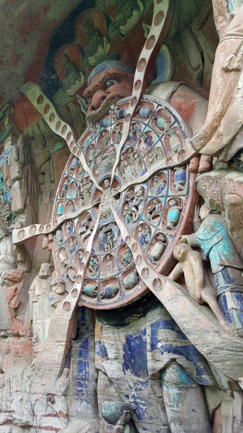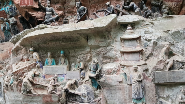 这个大足宝顶山石刻展示了无与伦比的艺术形式而有别于通常佛教寺院里供奉的传统佛像造型,是宋代中国艺术巅峰期的旷世杰作。虽然从年代来讲属于晚期佛窟造像,如果单论艺术表现的想象力、创造性和多样性,我个人认为大足石刻要胜过龙门石窟和云冈石窟。