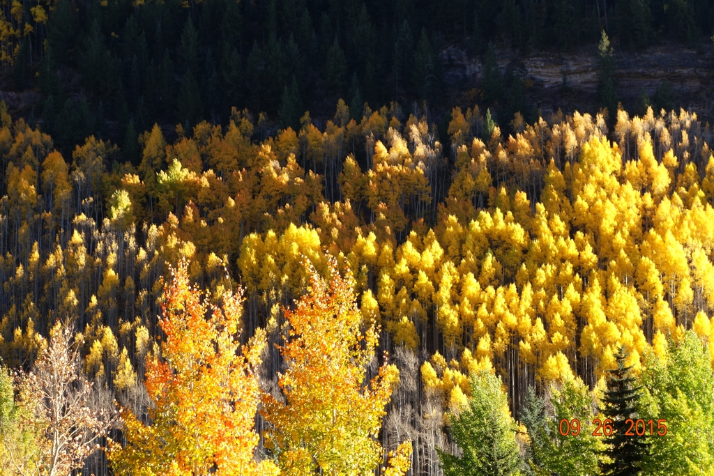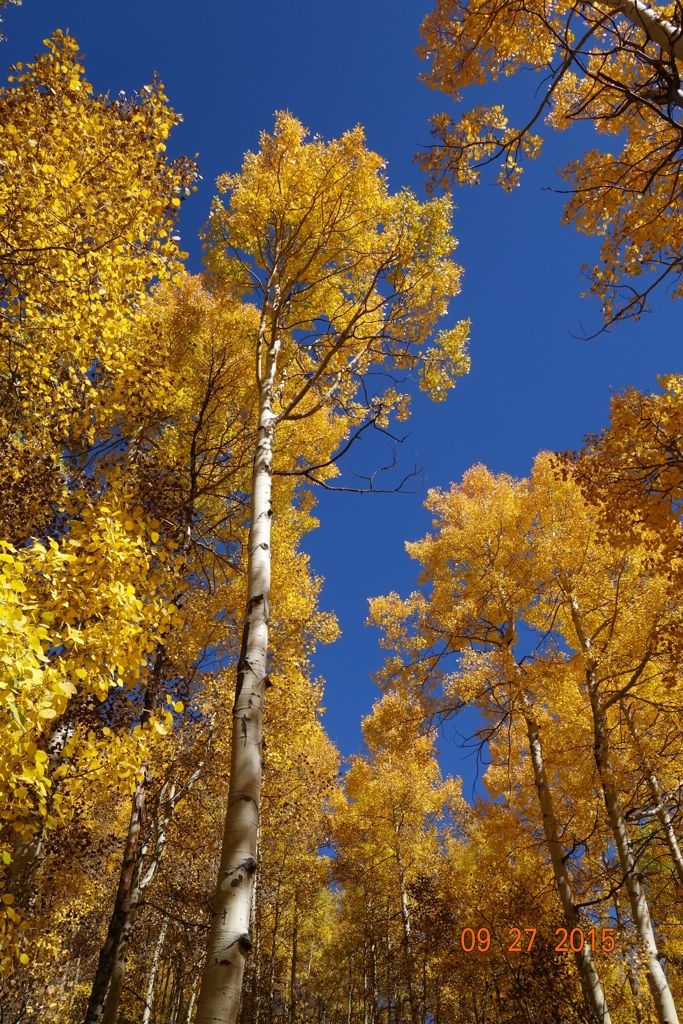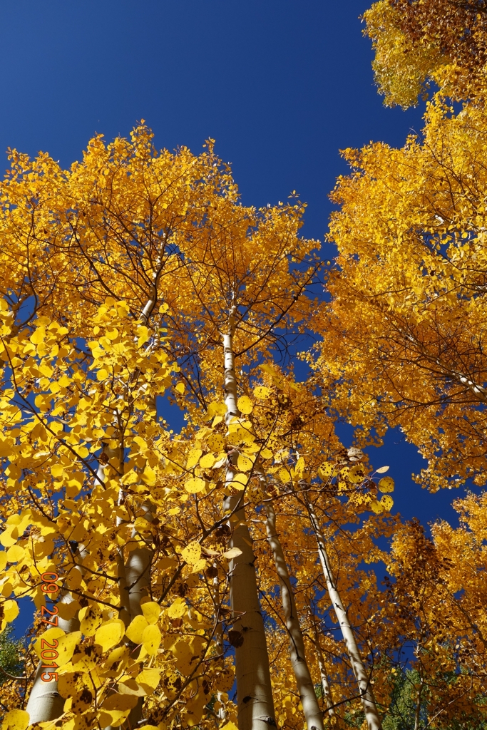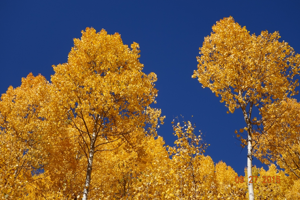 这次赏叶之行很早就计划了。一查天气,这几天都是大晴天,心情大悦。上次去Aspen还是今天的夏天,就在几个月前。那次天公不作美,满天乌云,淅淅沥沥的下着雨。即便这样,依然兴致满怀地爬了一天山,那漫山遍野的杨树给我留下了非常深刻的印象。我当时就想,等到金秋时节叶子变黄了,这里一定美轮美奂,我会再回来。我没有食言,周五就开始蠢蠢欲动了,在办公室里根本没有心思干正经事,上网查查天气啊,查查路线该怎样走啊,沿路有什么好餐馆啊,哪个地方的白杨最赏心悦目啊。