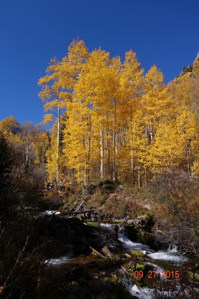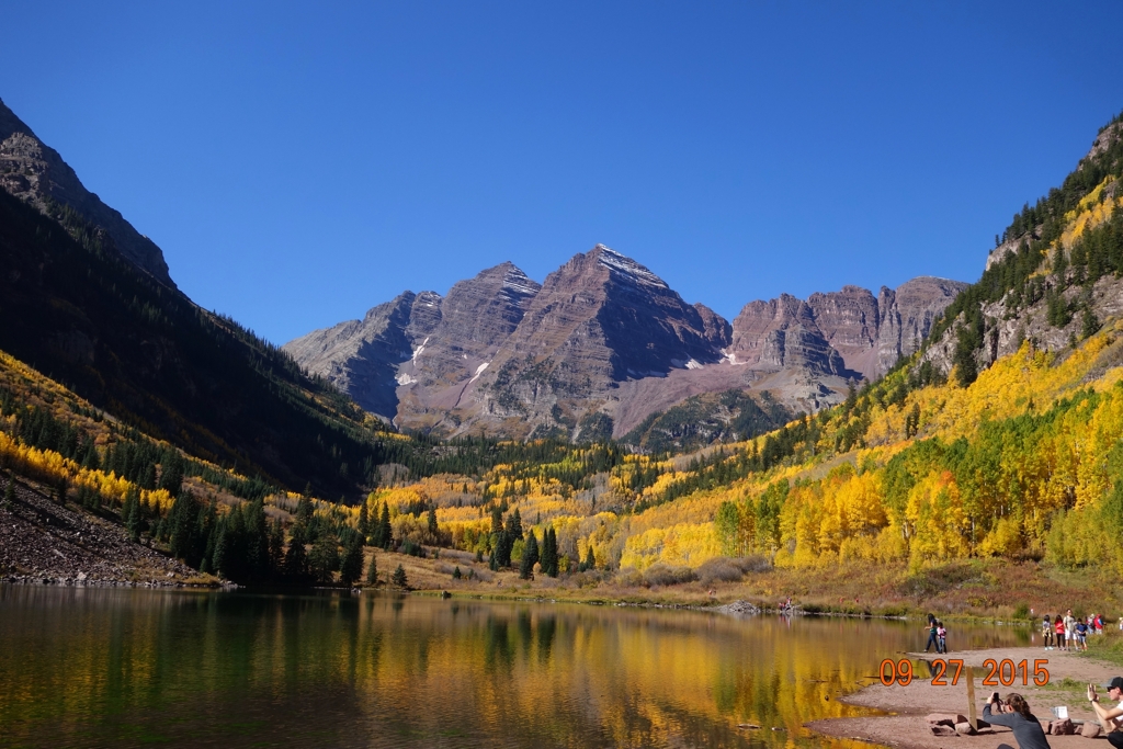 对于自然景色,我一般很挑剔。如果按照十分制评分的话,亚利桑那的大峡谷在我眼里只能评5分,怀俄明的黄石公园能评6分,杭州西湖和丹佛的落基山国家公园可以评7分,但是Maroon 的秋景,我毫不吝啬给9分的高分。我真的很难用言语来表达眼中所见。毫不夸张,这是我有生以来见过的最摄人心魂的自然景色。蓝天、黄叶、高山、湖水构成一幅无与伦比的图画令人陶醉。最后想说的是,我没给满分10分的原因是Maroon的景色虽然震撼人心,但往后很有可能会看到比这更为美妙绝伦的景色。所以还是谨慎一些,把10分预留给将来吧,也好让自己心里有所期盼。据说科州最美的景色在Crested Butte 和San Juan这两处地方,我尚未涉足。正应验了那句俗语:没有最美,只有更美。