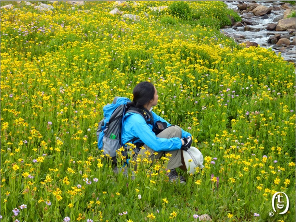 去Aspen的路上,会经过Vail。Vail也是科州一个很著名的滑雪胜地。曾经有一年冬天去Vail山上滑过一次雪,感觉老了,滑不动了。万一不小心摔一跤把老命也赔上,实在不划算,从此便再也没有滑过雪。网上有个叫“熊猫媳妇”的传奇女侠,足迹踏遍科州南北,是我心目中的偶像。虽然在同一个城市里生活,却从未谋面。她在网上介绍说Vail的黄叶很好看,所以吸引我也去那里看一眼。这便是熊猫媳妇的倩影,网上剽窃来的。(顺便忏悔一下,我这篇东西的标题“满山尽带黄金甲”也是从她那里剽窃来的,实在很惭愧。江郎才尽啊)