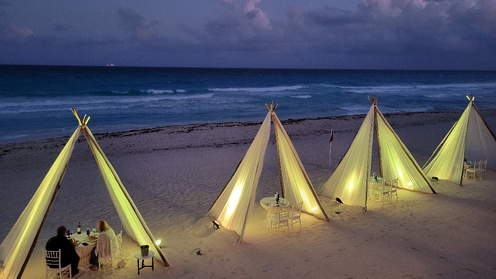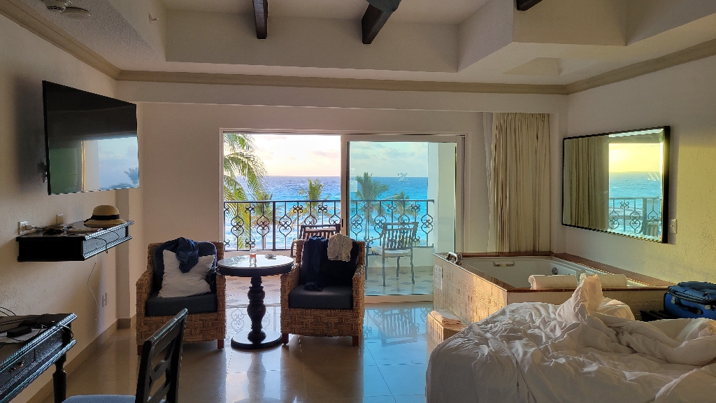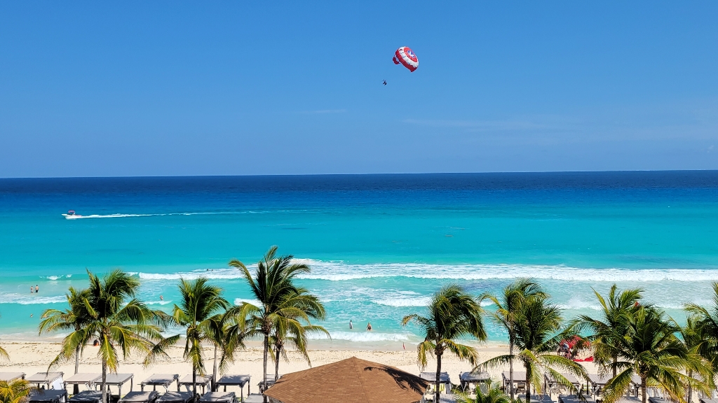 预定酒店的时候我挑了地段最好的一家。老婆心疼钱,觉得没必要住这么豪华的酒店。但俗话说穷家富路,人生难得尽情享受一回。这几年的疫情给我最大的感触就是未来不可预知,幸福转瞬即逝,所以应该及时行乐。李白不是说了么:人生得意须尽欢,千金散尽还复来。坎昆酒店的一个特色是很多都属于all inclusive的类型,就是全包的意思。全包的概念在理论上来讲酒店里面的全部消费都不需要额外掏钱,包括餐饮和各种娱乐,类似于游轮上的那种玩法。只有某些特殊服务比如足疗和龙虾大餐等需要另外交费。当然,羊毛出在羊身上,其实旅客在预订酒店的时候已经预先埋了单。我住的酒店里面有六家餐馆,包括亚洲、地中海、意大利、墨西哥等各种风味。反正不用掏钱,有几天晚餐我接连在两家不同的餐馆吃,有暴饮暴食的嫌疑,完全是穷人的吃相。