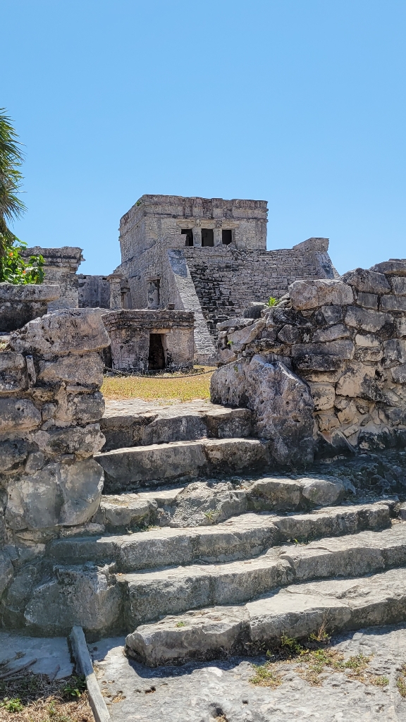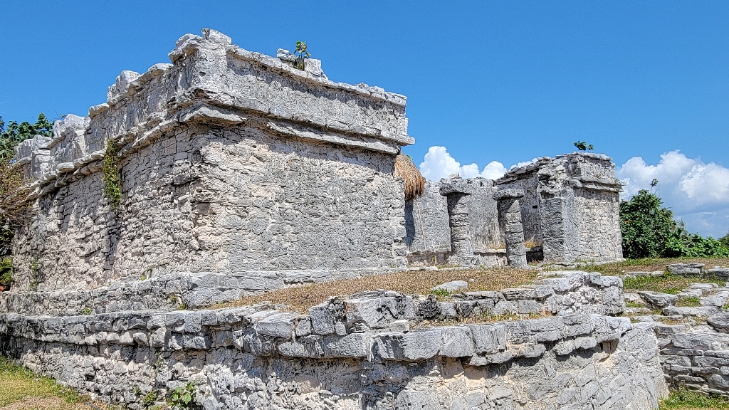 除了奇琴伊察,坎昆附近还有一个古代玛雅人遗址叫图伦(Tulum),就在大海边上,但是距离坎昆稍远,保留有玛雅人修建的最大规模的古城址。如果参加一日游的话,得做好早出晚归的准备。由于各时期的破坏,玛雅遗迹留存下来的不多,主要都是些石垒建筑。可以说基本上还处于石器时代。眼前的这个石城建造年代大约是十三到十五世纪,属于玛雅文明后期的遗物。相比之下,中国陕西神木的石峁城遗址也是石垒建筑,迄今已有4千年历史了。所以我个人认为印第安文明跟古代欧亚文明不在一个级别上,无法相提并论。