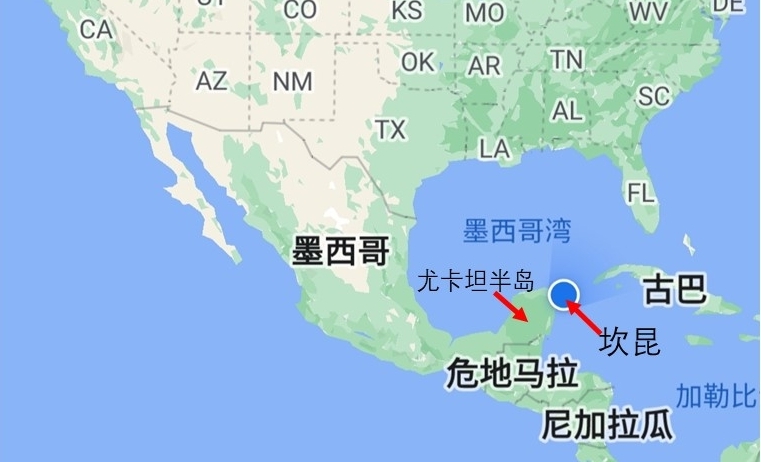 2022年的三月春寒料峭,趁学校放一周春假,琢磨着找个地方逛逛。这时节里北边是不用想的,因为美国的大部分地区纬度比较靠北,乍暖还寒时候最难将息。夏威夷固然是个理想的去处,但一年前才刚去过。于是南边的坎昆便成了首选之地。坎昆(Cancun)是墨西哥尤卡坦半岛角上的一个旅游城市,位于加勒比海和墨西哥湾交接处,三面环海,隔岸正对着古巴。尤卡坦就是史前时期造成恐龙灭绝的那颗小行星撞击地球的地方,附近海底还留有那次撞击形成的巨大陨石坑。