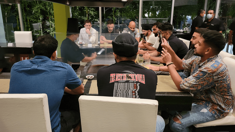 这日式餐馆里的顾客到底是来吃饭呢还是围观厨师的杂耍表演?