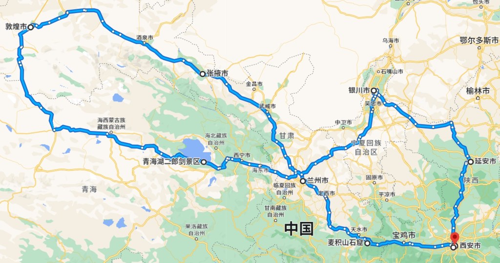 我这次行程的主线是要覆盖陕甘宁和青海一带的第一批全国重点文物保护单位。但是最初的计划过于庞大,象条贪吃蛇,不仅预想着要造访西安近郊的所有72座帝陵,还要把沿途的佛窟一网打尽。 最终意识到这样的行程不太现实,好歹也是年过半百的人了,理应量力而行和细水长流,好给将来留下一个期待。而且七十六岁老妈的欣然加入让旅途增加乐趣的同时也平添了变数,权衡再三,不得不忍痛割爱,在行程单里删去了神木石峁古城、北凉文殊山石窟、甘肃炳灵寺石窟以及黄教六大寺之一的拉卜愣寺这些偏离主线的去处。