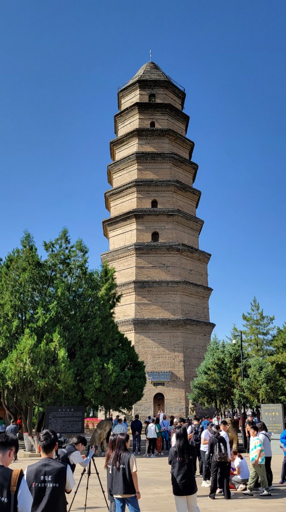 宝塔山上挤满了朝圣的游客。