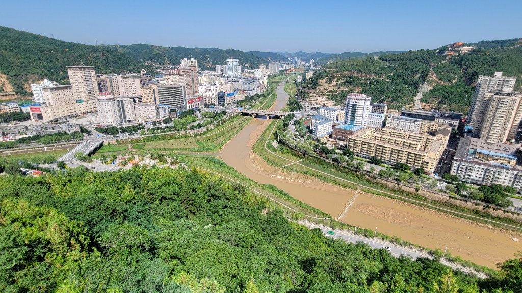 蜿蜒的延河贯穿整个延安市区。