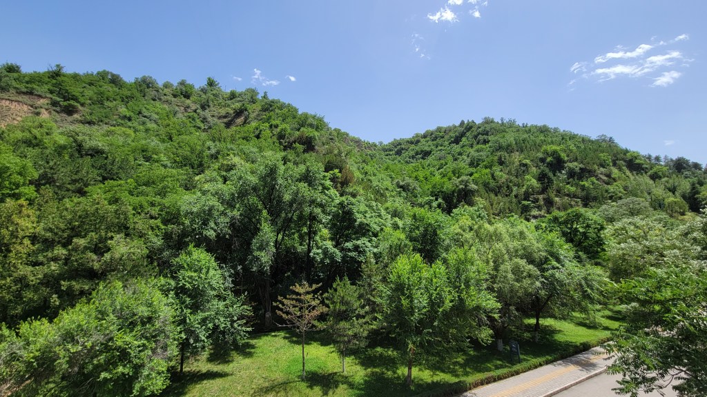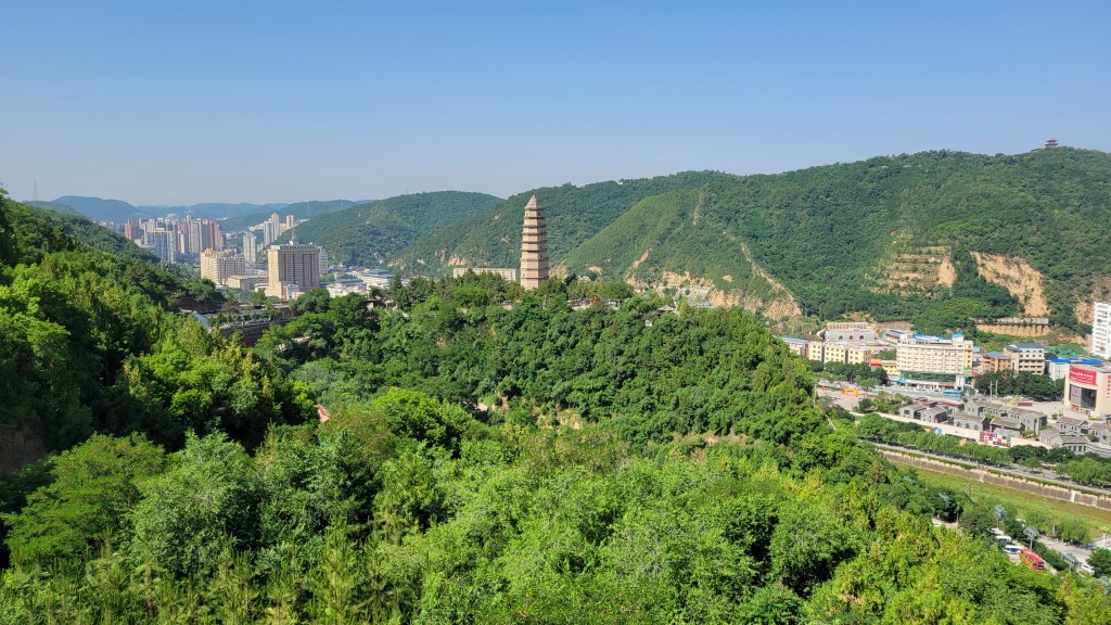 延安这个地方跟我以前想象的完全不一样,颠覆了我的认知。读万卷书不如行万里路,果真如此啊。因为看惯了革命时期的黑白老照片,猜想延安是个穷乡僻壤、童山濯濯、跟甘肃戈壁差不多的干旱贫瘠之地。既然是黄土高原,那里的基调色彩一定是黄色。要不就是千里黄云白日曛,要不就是“我家住在黄土高坡,大风从坡上刮过”。没想到千沟万壑之中处处郁郁葱葱、生机盎然。单看照片,一派江南风光。虽然没有白水绕东城,但绝对是青山横北郭。作为黄河的一级支流,横贯延安市区的延河裹挟着上游的泥沙滚滚而下,虽其貌不扬,却如同一条动脉灌溉了河道两岸的土地,滋养了整座城市。