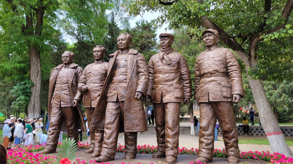 枣园里的这组雕像还是不错的,五大书记个个神采奕奕。