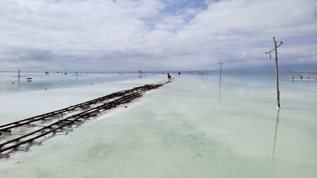这是七十年代盐区采盐用的老铁轨和电线杆。