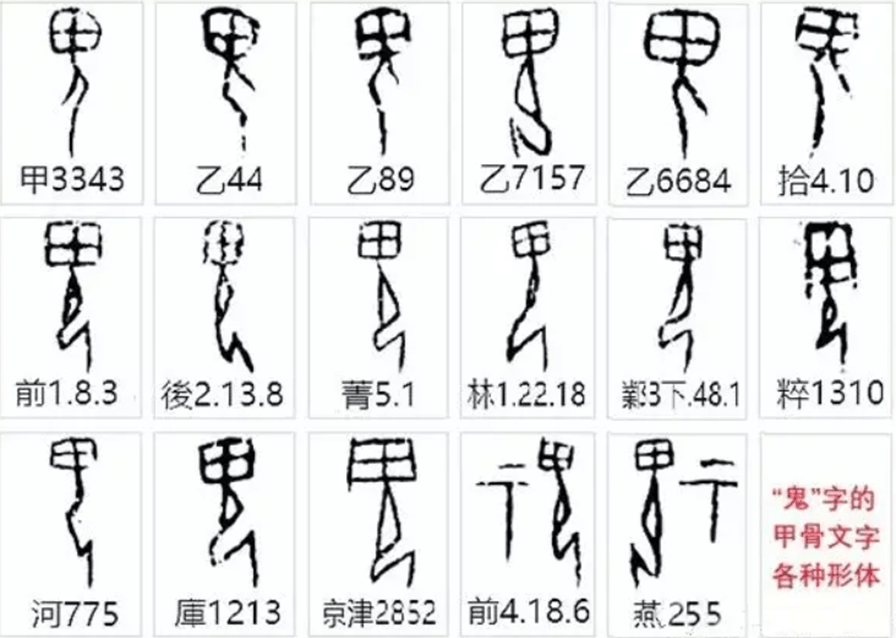 鬼:汉语一级通用字,有观点认为鬼字从田从人,意思是人死后葬于土(田)中,所以变成鬼。但问题是田和土在甲骨文里是不同的两个字,代表不同的含义。田用作田地的时候专指农业用地。人死后是不会葬在田里的,而是葬在墓地或者土里;主流观点认为鬼字的田代表巫师的面具,跟祭祀活动有关。而在我看来,把田字解释成兽,兽面人身为鬼,再清楚不过了。即使跟巫师的面具相关,也多半是狰狞的兽形面具。这里田代表兽的可能性我认为超过90%。