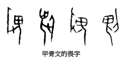 畏:汉语一级通用字,从字形上看分左右两部分,《说文解字》把它解读成鬼头和虎爪。因为畏的一半是鬼字,所以这里田代表兽的可能性我认为也是90%。