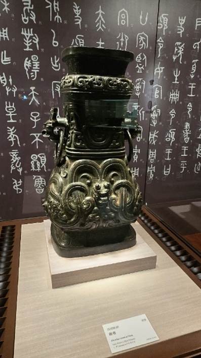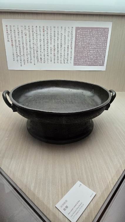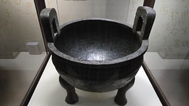 这是我仰慕已久的西周青铜重器毛公鼎,终于有幸一饱眼福。鼎壁内侧刻有500字铭文,是所有存世青铜器里铭文最多的。因为青铜器铭文一字千金,使得毛公鼎在商周青铜器里有着举足轻重的地位,被认为是台北故宫的镇馆之宝。