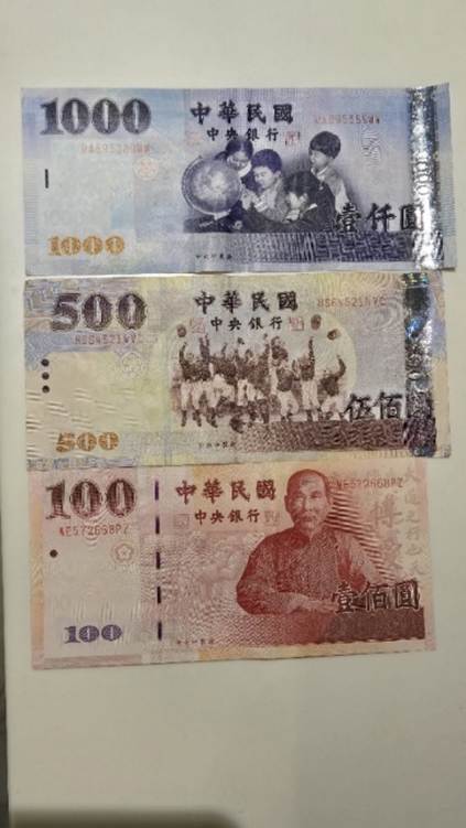 新台币纸钞上居然没有老蒋的头像。孙中山头像也只在100元(相当于人民币24元)低面值上出现,有点意外。
