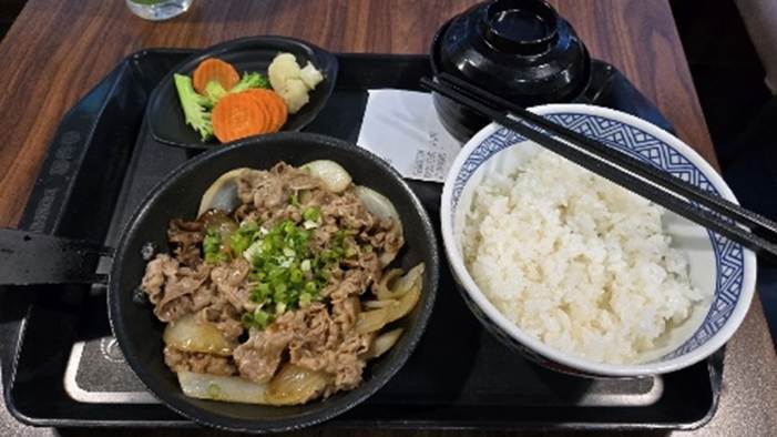 转了一圈,眼花缭乱。我每到一地对当地美食常有种莫名的抵触和恐惧。算了,先不着急品尝台湾美食,还是吃吉野家吧。熟悉的店面、熟悉的菜式。浅浅的一点米饭,浅浅的一点洋葱牛肉片浇日本照烧汁。价格不贵,185新台币,相当于40多元人民币,跟我在北京和上海吃过的吉野家差不多。