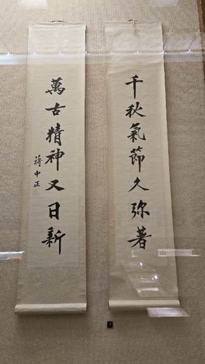 蒋介石的字很端正,真是字如其人啊。老蒋总给人一本正经的感觉,站如松坐如钟,作息很有规律,既不抽烟也不喝酒,清晨起来祷告,天天坚持写日记,饮食也清淡,非常自律。正如他的”中正”之名。相比之下,毛泽东晨昏颠倒,行事每每不合常规出其不意,既抽烟又喝酒,所以他的字也是龙飞凤舞挥洒自如,气势磅礴而富有个性和激情,跳跃着奔放的思维不落窠臼。真是字如其人、文如其人啊。