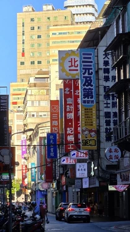 从桃园机场出来坐轻轨车一路浏览窗外景色留下的直观感受是:1.建筑普遍残破老旧,不如大陆的新颖;2.轻轨车慢如蜗牛,远不如大陆地铁快捷;3.自动售票机居然只收纸币不收信用卡更不必说手机支付了,有点落后啊。
