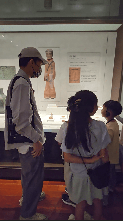 这是我在台北故宫经历的难忘的一幕。照片里的背景橱窗以“剑”为主题,并以屈原《九章》为例,诠释中国古代君子服剑佩玉的贵族风度。一位看上去像老师的年轻人,正在橱窗前给几个小学生模样的孩子讲述孟尝君与冯谖的故事。因为故事里涉及冯谖的佩剑,正好与“君子服剑”的主题紧密相关。这个故事在《战国策》里很有名,“狡兔三窟”的成语便出于此,脍炙人口,所以引起我兴趣驻足旁听。老师讲得很生动,孩子们也听得很认真,不时爆发出欢快的笑声。看着眼前这一幕我心生感慨:如果永远都能有这样一位优秀而风趣的老师,面对一群可爱的孩子娓娓道来屈原的故事,或者孟尝君与冯谖的故事,而孩子们在一旁专注聆听,时而欢笑,没有什么画面比这更加动人了。此时此刻,我清晰地见证着我们祖先的文化正在这座小岛上薪火相传……